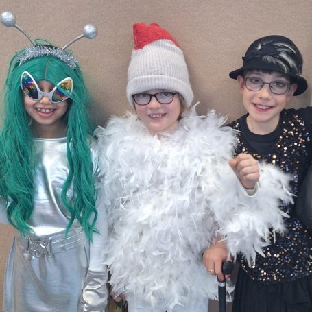 Den Kostümwettbewerb haben das Chicken (4a) und die alte Oma (4c) gewonnen. Platz 3 ging an das Ailienmädchen aus Klasse 2a.