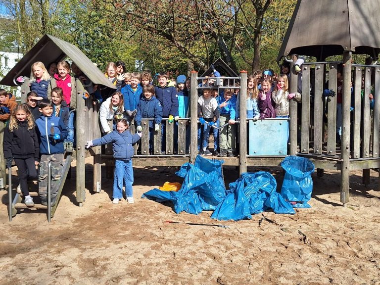 Im Rahmen de Saubermonats März haben die Kinder der Eichendorff-Schule am Freitag vor den Osterferien rund um die Schule den Müll auf den Wegen, Spielplätzen und Parkanlagen gesammelt. Es wurden viele Säcke gefüllt.