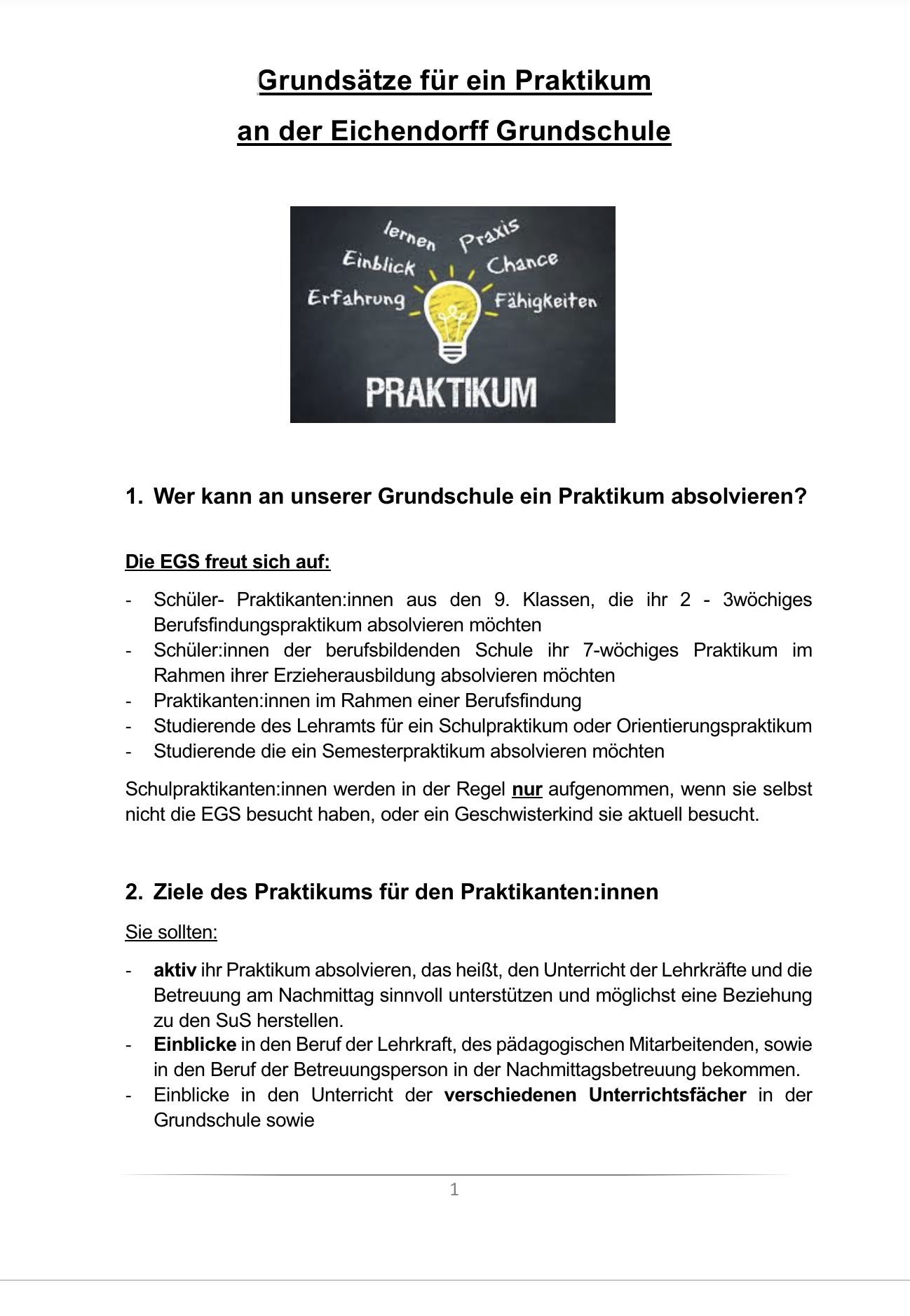 wir freuen uns, dass Du Dich für ein Praktikum an unserer Schule interessierst.